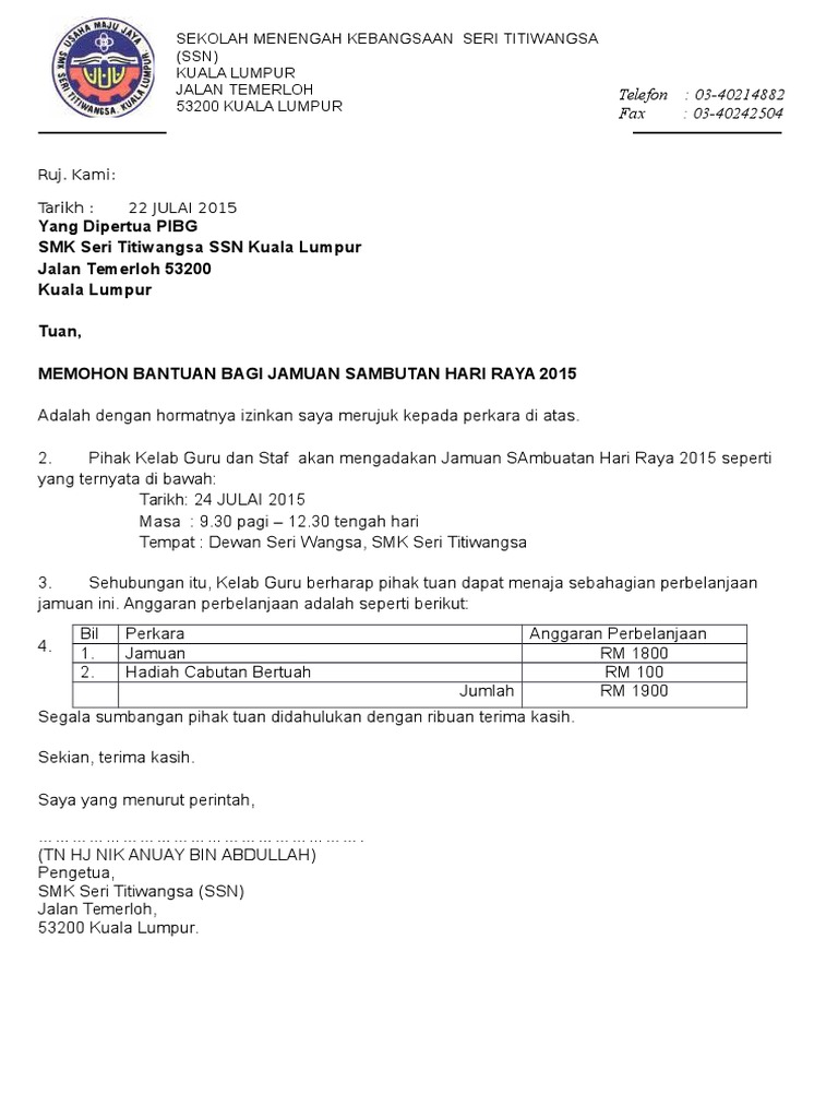 Surat Mohon Tajaan Pibg Jamuan Hari Raya Pdf